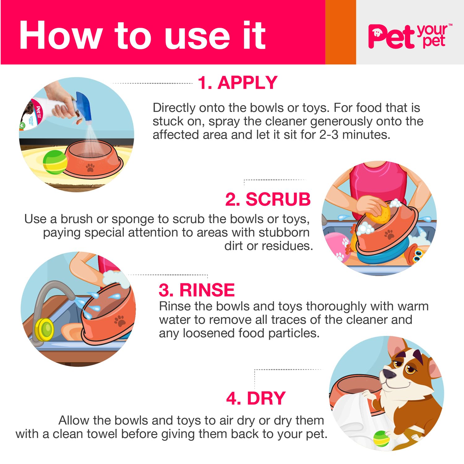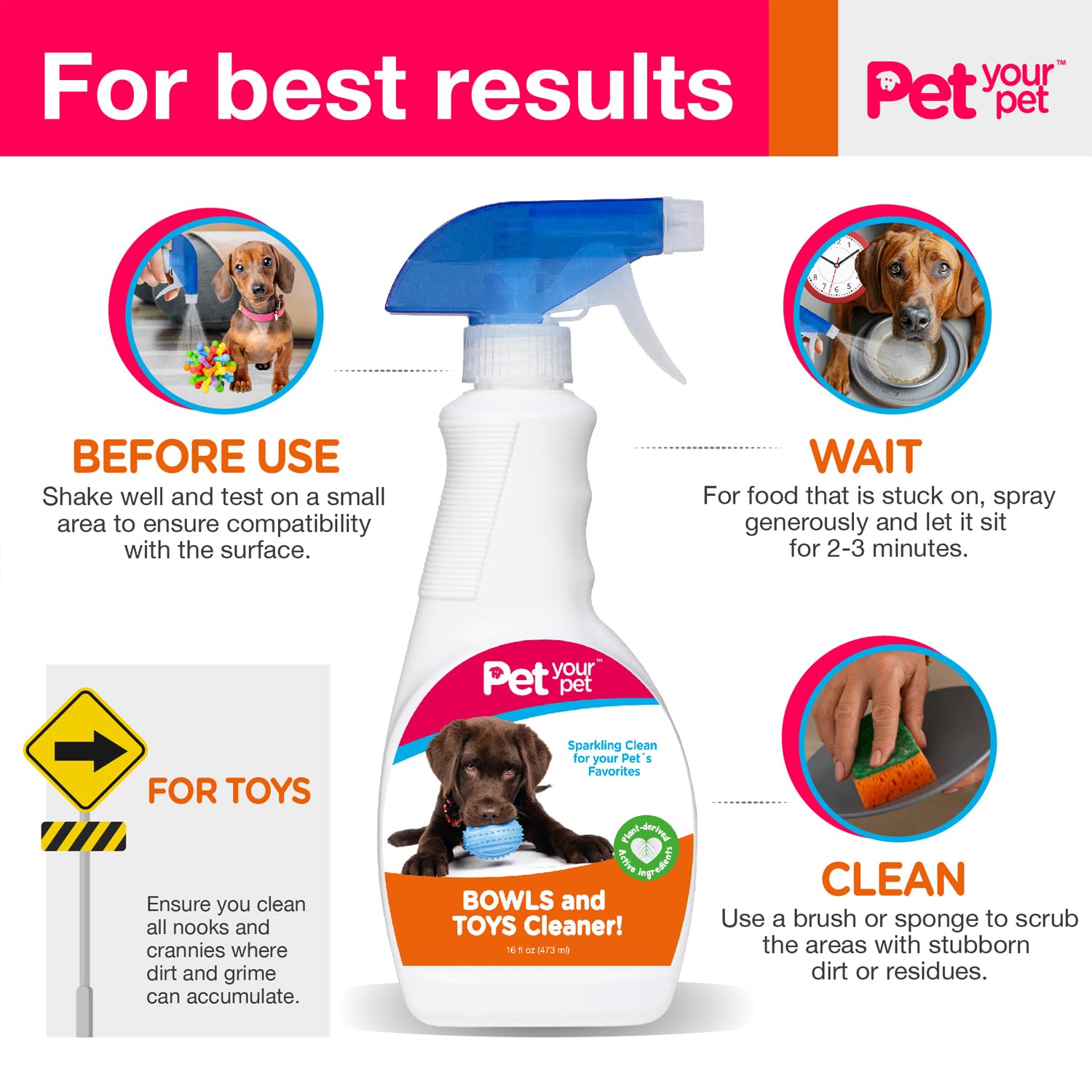 - MULTI-SURFACE CLEANER: Versatile and efficient, this spray cleaner works wonders on dog bowls, cat bowls, and toys. It's your go-to cat and dog bowl cleaner for a sparkling clean every time, ensuring your pet's essentials are always pristine